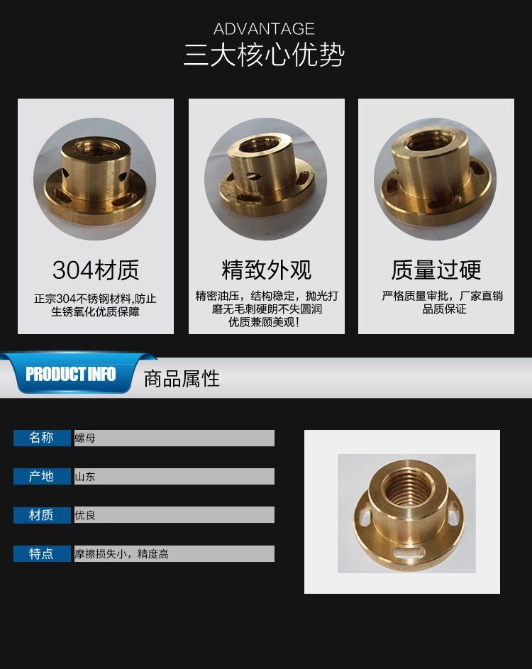 产品详情:螺纹是在圆柱体或圆锥体的表面上加工的具特定横截面的螺旋形连续凸部。根据母体的形状将螺纹分为圆柱螺纹和圆锥螺纹。根据母体的位置分为外螺纹和内螺纹。梯形螺纹根据其截面形状(齿形)和其他异形螺纹[1]分为三角螺纹,矩形螺纹,梯形螺纹和锯齿形螺纹[1]。梯形螺纹是一种螺纹,分为公制和英制两种英制梯形螺纹的齿廓角为29°,我国常见的是公制梯形螺纹,齿廓角为30°,齿形为等腰梯形,一般而言用以传动某些部门,并且须要具备一定的强度和刚度要求。